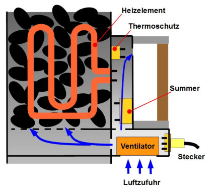Der Thermoschutz schaltet das Heizelement ab, wenn die Kohle entzündet ist.